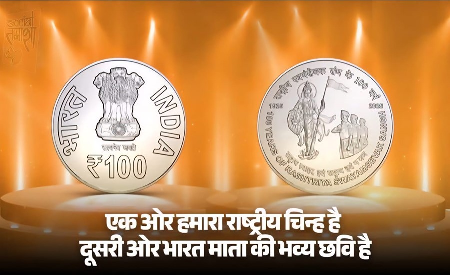 राष्ट्रीय स्वयंसेवक संघ यानी RSS की स्थापना के 100 वर्ष विजयदशमी पर पूरे होने के इस शताब्दी समारोह के अवसर पर पीएम मोदी ने राष्ट्र के प्रति आरएसएस के योगदान को दर्शाने वाला एक विशेष रूप से डिजाइन किया गया स्मारक डाक टिकट और भारत माता अंकित सिक्का जारी किया है जिसमे इस सिक्के के ऊपर संघ का बोध वाक्य "राष्ट्राय स्वाहा, इदं राष्ट्राय इदं न मम" भी लिखा गया है।